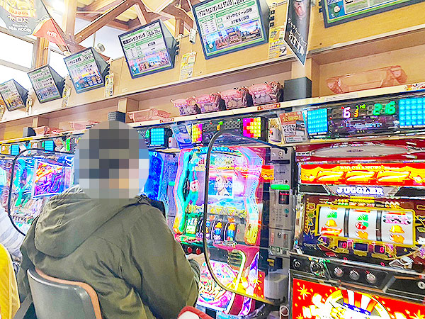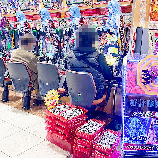 16時半過ぎの4円パチンコをチェックすると、「ぱちんこ シン・エヴァンゲリオン Type レイ」や「Pフィーバー戦姫絶唱シンフォギア3黄金絶唱」で好調なプレイヤーを確認。時折見せる嬉しそうな表情が印象に残っている。
