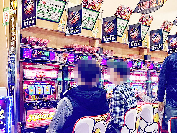 「沖ドキ!GOLD-30」や「キングハナハナ-30」といった沖スロも活況の様子。機種のポテンシャルをフルに発揮したプレイヤーを目撃している。