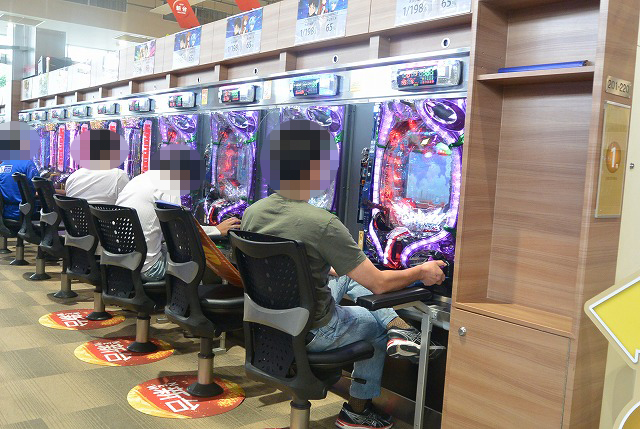 新台「CRヱヴァンゲリヲン10 SPEED IMPACT」もプレイヤーで席が埋めつくされ、導入して間もないのにすでに支持を得ているようだった。