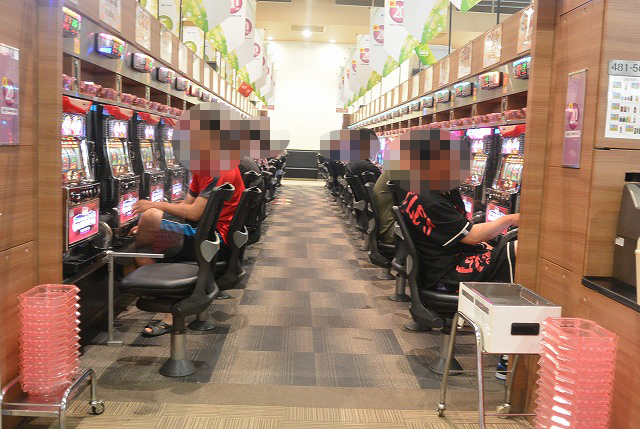 5円スロットコーナーでは、「アナザーゴッドハーデス-奪われたZEUSver.-」「ミリオンゴッド-神々の凱旋-」に多くのプレイヤーが集中し、シマ全体が活気づいていた。