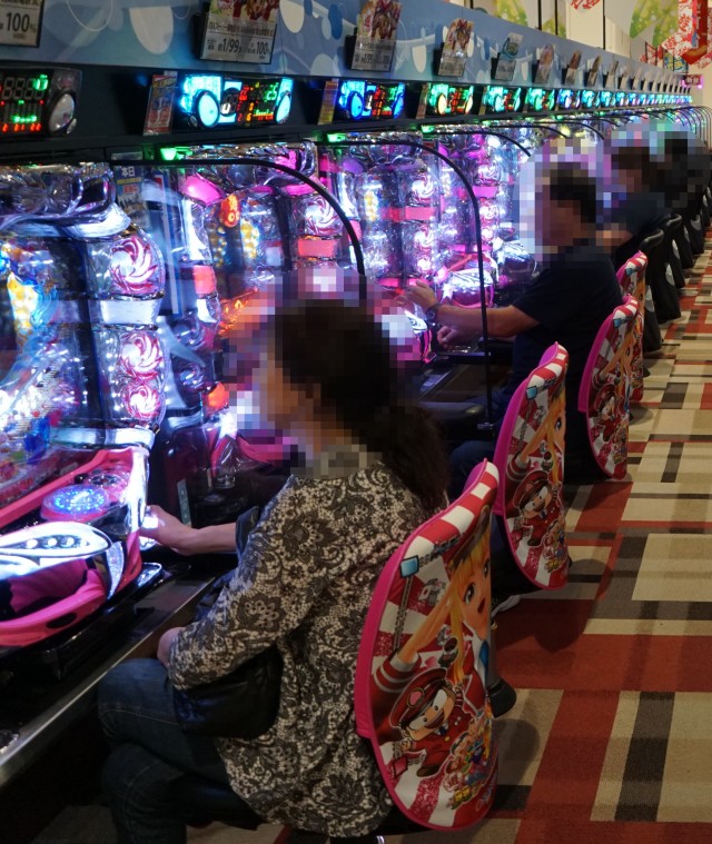 4円パチンココーナーは「CRAスーパー海物語 IN JAPAN with 桃太郎電鉄」などの海物語シリーズを中心にプレイヤーたちが遊技を楽しんでいた。