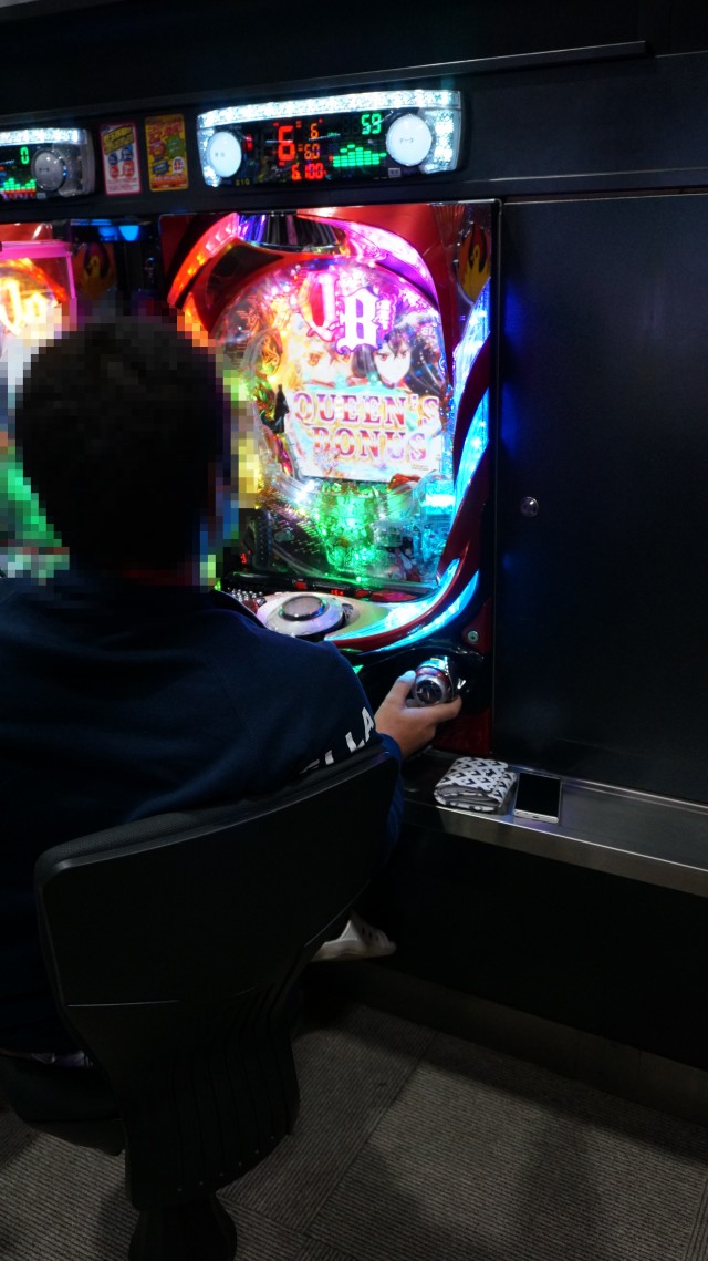 4円パチンココーナーは、ミドルタイプ「パチンコCRクイーンズブレイド2 レイナ」で活躍をみせるプレイヤーの姿があった。大当たりを重ね、満足気な表情を浮かべていた。