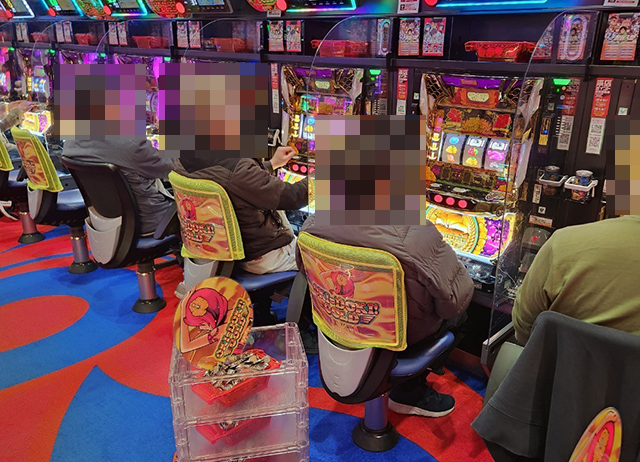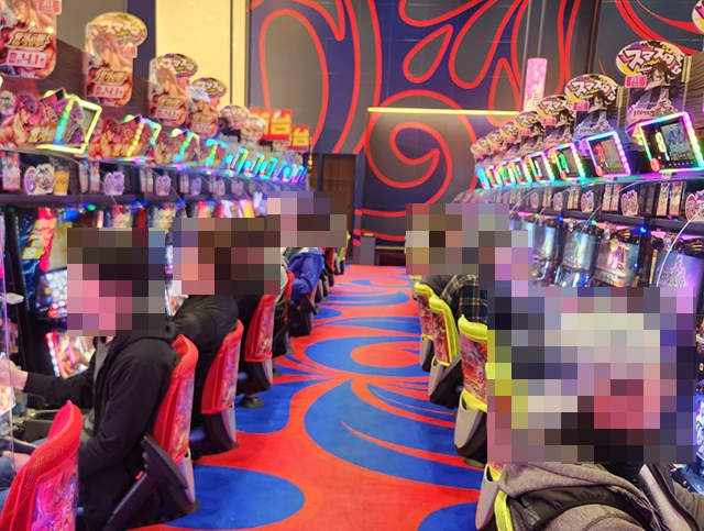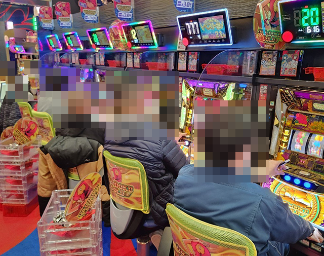 ほとんどの台が埋まるほどに稼働率が高く、シマ内は大にぎわい。
