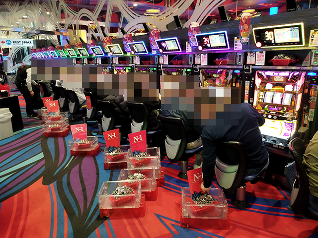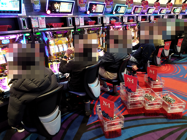 16時近くには約8割の台が稼働するほどに人気を集め、シマ内は大にぎわいとなっていた。