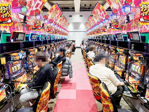 5.435円パチスロは全体的に高稼働。空き台が見当たらないほどの盛況ぶりだった。