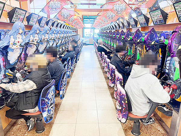 15時半ごろの4円パチンコでは「P大海物語5」や「ぱちんこ シン・エヴァンゲリオン Type レイ」、「新世紀エヴァンゲリオン〜未来への咆哮〜」が活況で、プレイヤーの満足そうな表情から、各々充実した時間を過ごしていたことがうかがえる。