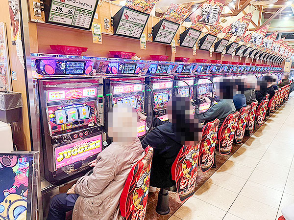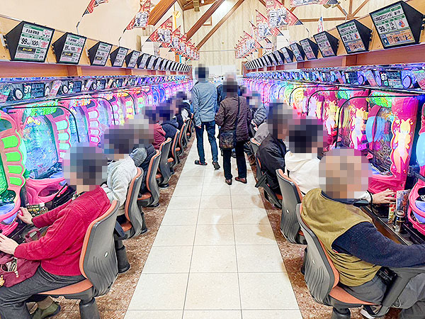 取材時は貸し玉料金に関係なくプレイヤーでにぎわっており、各シマとも明るい雰囲気に包まれていた。