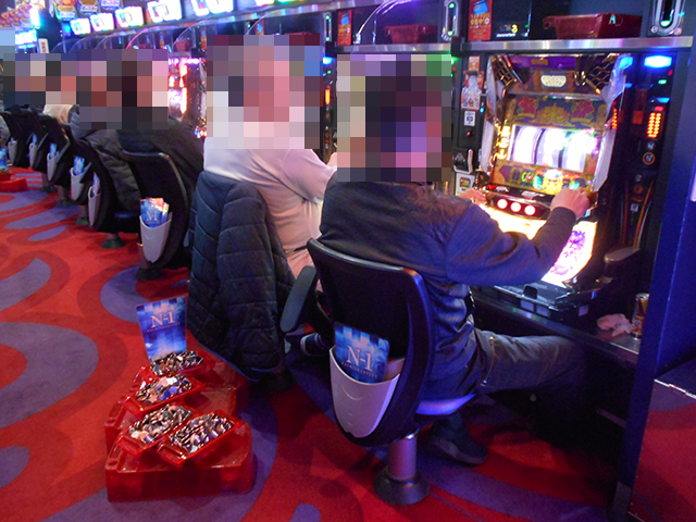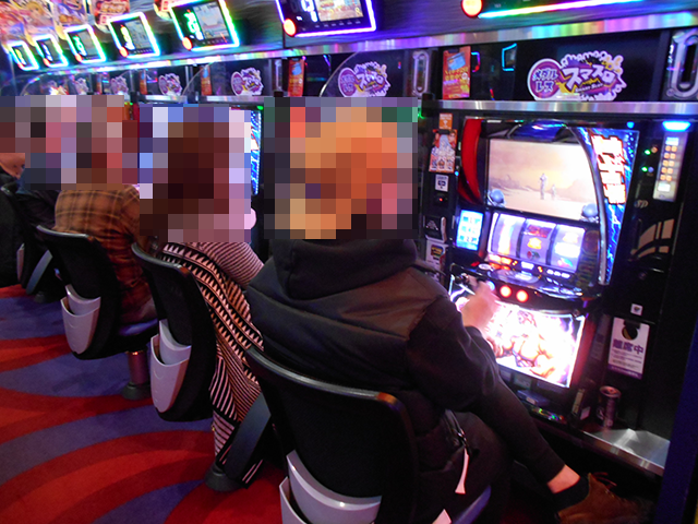 パチスロでは、「スマスロ北斗の拳」や「スマスロバジリスク~甲賀忍法帖~絆2 天膳 BLACK EDITION」などが満席となっており、あちこちから活気が感じられた。
