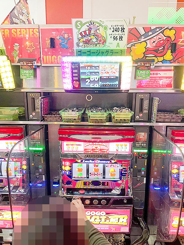 15時半ごろの20円パチスロを見てみると、「マイジャグラーⅤ」や「ゴーゴージャグラー3」、「ファンキージャグラー2」といったジャグラーシリーズが大盛り上がり。魅力的なシーンをシマのあちこちで目にしている。