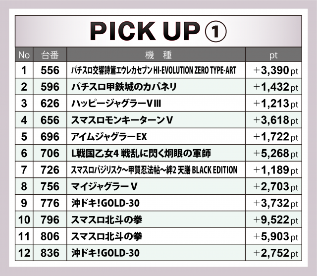 続いてはプラス率の高さが光った3機種について。一部末尾6の台と重複している点はご了承願いたい。