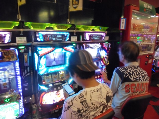 20円スロットコーナーの一番の注目を集めていたのは「バジリスク~甲賀忍法帖~絆 」だった。シマ一帯がプレイヤーであふれ、華やかな光景が広がっていた。