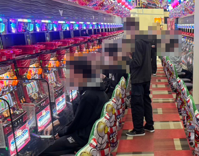 パチスロコーナーをまわっていると、ジャグラーシリーズで楽しそうに過ごしている姿を目にした。