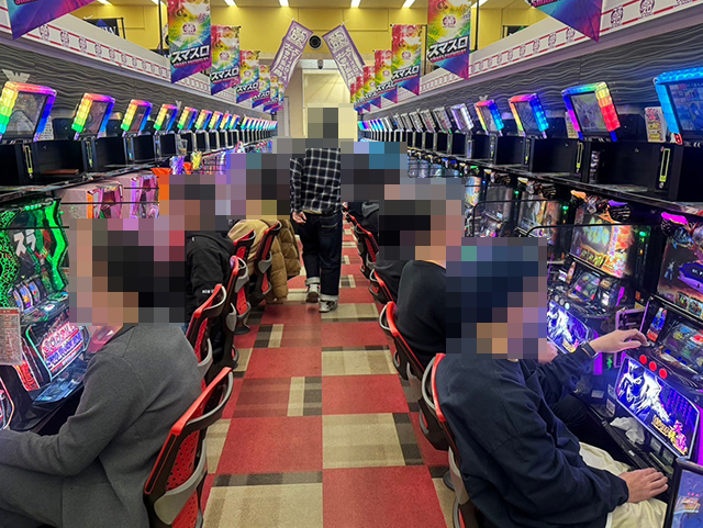 7割ほどが稼働していた「スマスロバジリスク~甲賀忍法帖~絆2 天膳 BLACK EDITION」がにぎやかなムード。