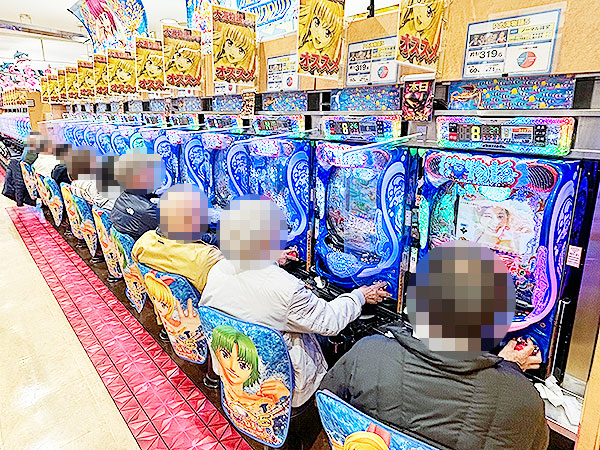 取材時はシマ中に活気が感じられ、貸し玉料金を問わず楽しげな表情でいっぱいだった。