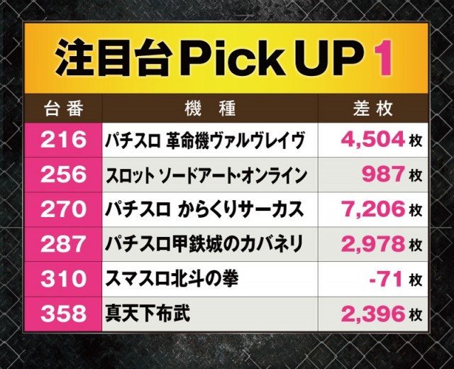 特に『パチスロ からくりサーカス』の盛り上がりが大きく+7,000枚オーバーと機種のポテンシャルをフルに発揮できていた。