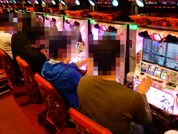 開店直後のホール内をみると、パチスロの「SLOT魔法少女まどか☆マギカ2」や4円パチンコの「CRエキサイトジャック」といった、最新機種が大人気となっていた。