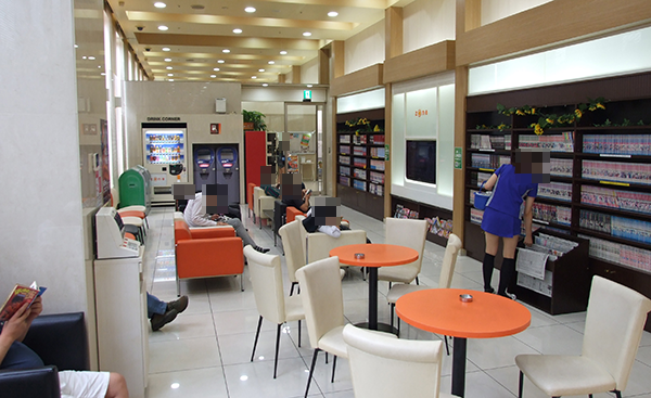 また、広々としたレストコーナーにはマンガ本や雑誌などが用意されている。休憩中や空き台を待つ時間も楽しく過ごせる設備も魅力に感じられた。