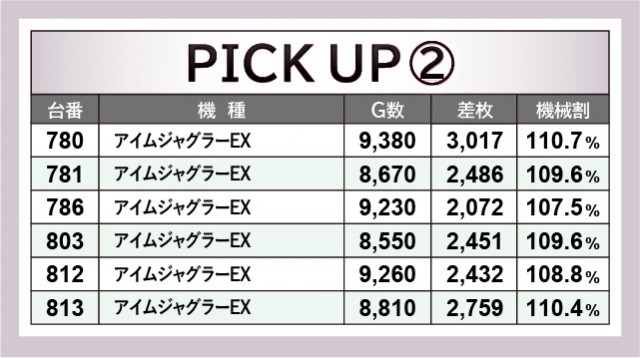 まず『ジャグラー』シリーズについて、『マイジャグラーⅤ』727番台+4,119枚という大きな熱量が見られた。回転数からも分かるように、多くの台が回転数と差枚数が比例する展開を披露していたのが目に焼きつくばかりだ。そして『アイムジャグラーEX』も同様で、安定したパフォーマンスでファンを魅了。老若男女問わず愛される機種は、遊技するファンを笑顔にしていたのは間違いない。