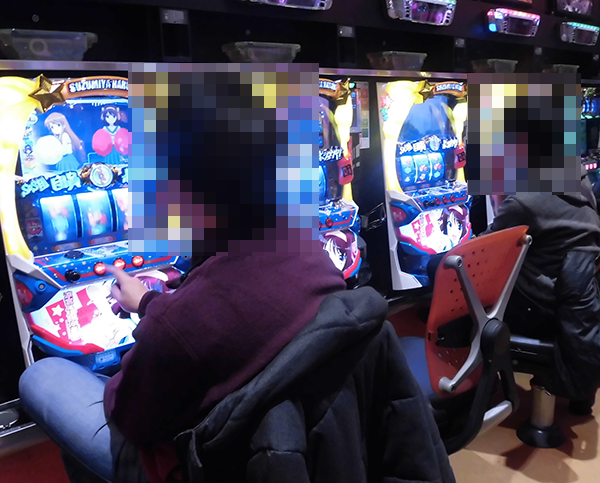 開店直後のホール内で注目を集めていたのが、パチスロの新機種である「パチスロ涼宮ハルヒの憂鬱」。プレイヤーの明るい表情からは、期待が大きいことも伝わってきた。