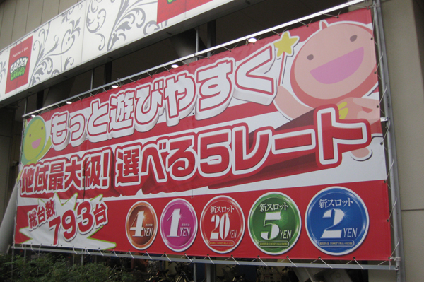 より多くのプレイヤーのニーズに応えるため、4円パチンコ、1円パチンコ、1000円/47枚スロット、5円スロット、2円スロットという5種類のレートを用意した店舗となっている。