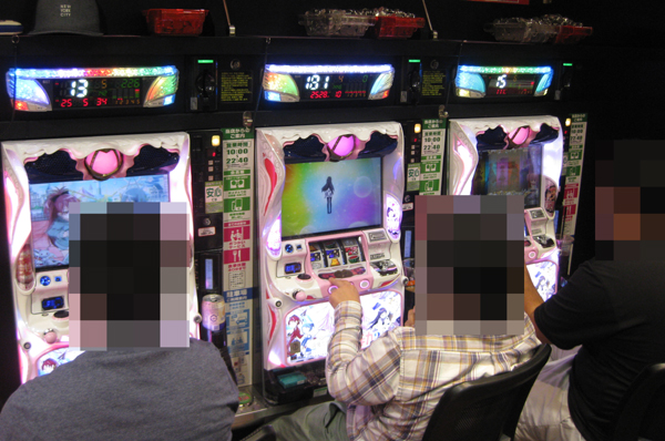 1000円/47枚スロットでは、新台「パチスロ北斗の拳 修羅の国篇」、「SLOT魔法少女まどか☆マギカ2」が盛況。魅力的な光景も多数確認でき、全体的に明るい雰囲気に包まれていた。