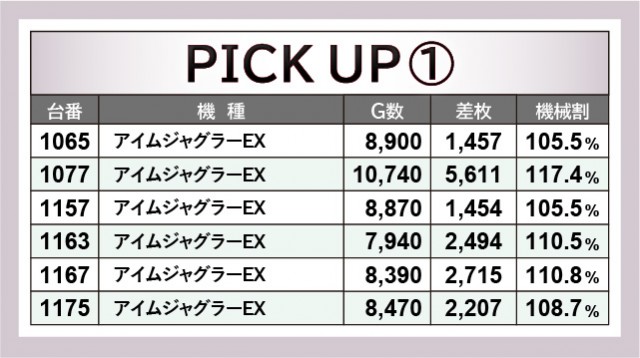 『ジャグラー』シリーズが設置された島は活気が絶えず、閉店まで打ち込むファンの姿を多く確認できた。特に『アイムジャグラーEX』『マイジャグラーⅤ』は中心となっており、回転数と差枚数が比例する展開を披露。1077番台+5,611枚という凄まじい記録が生まれているため、ファンがどれほどの好感触を得ていたのかは火を見るよりも明らかだ。
