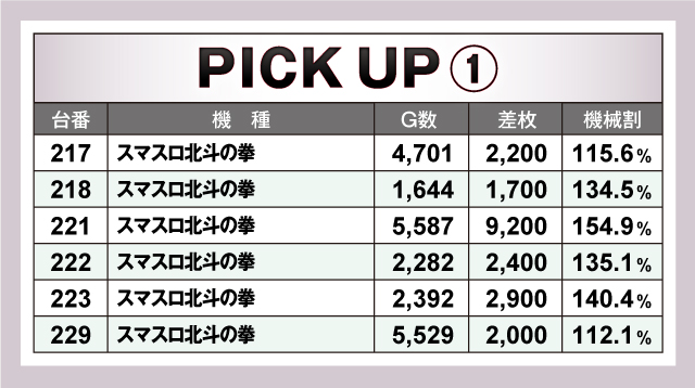 続いては、当日とくに盛り上がっていた2機種を紹介。まず「スマスロ北斗の拳」は、ピックアップ6台の平均差枚+3,400枚とアベレージの高い結果をマーク! また最優秀台も獲得した「スマスロバジリスク~甲賀忍法帖~絆2 天膳 BLACK EDITION」は、264番台の+11,100枚を筆頭に好記録を複数確認! ピックアップ5台の平均差枚は+6,960枚と他を圧倒する素晴らしい結果を残していたぞ!