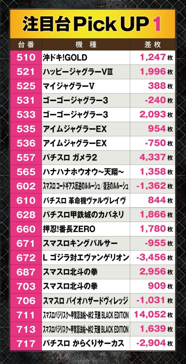 今回は店内の様々な機種から好調台が誕生していたのが目に付いた。