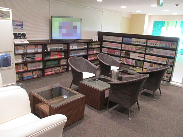漫画や雑誌が充実しているレストスペースは、携帯電話の充電サービスやWi-Fiも利用することができる。