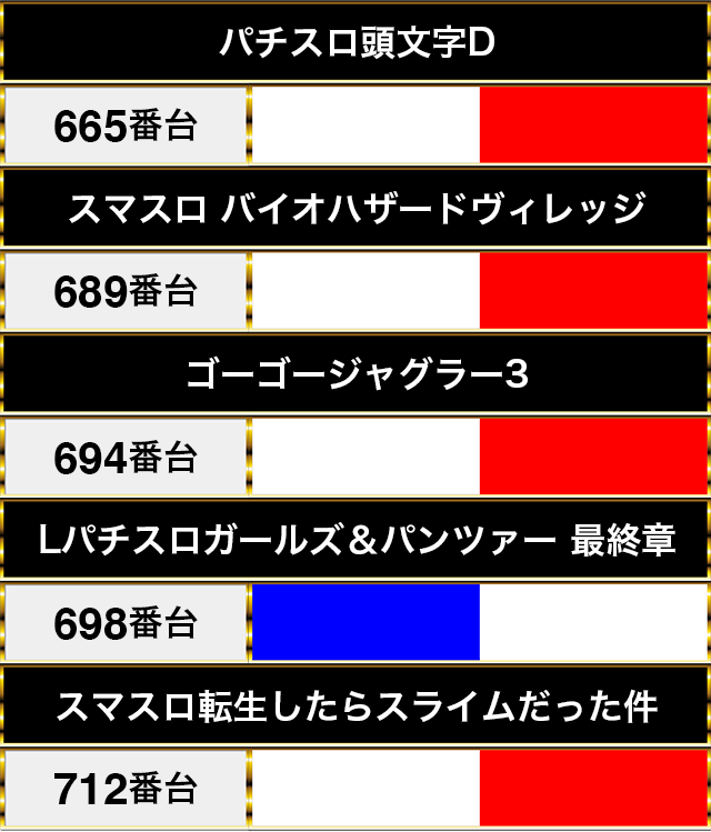 『スマスロ コードギアス反逆のルルーシュ/復活のルルーシュ』の661番台と『スマスロ転生したらスライムだった件』の712番台もプラスptとなった。