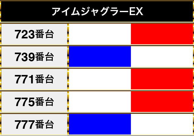 『アイムジャグラーEX』は最終的に723番台と771番台、775番台がプラスpt。