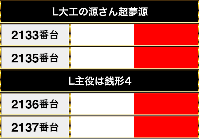 並びで設置されており、最終的には2133番台から2137番台までが連なってプラスptを記録!