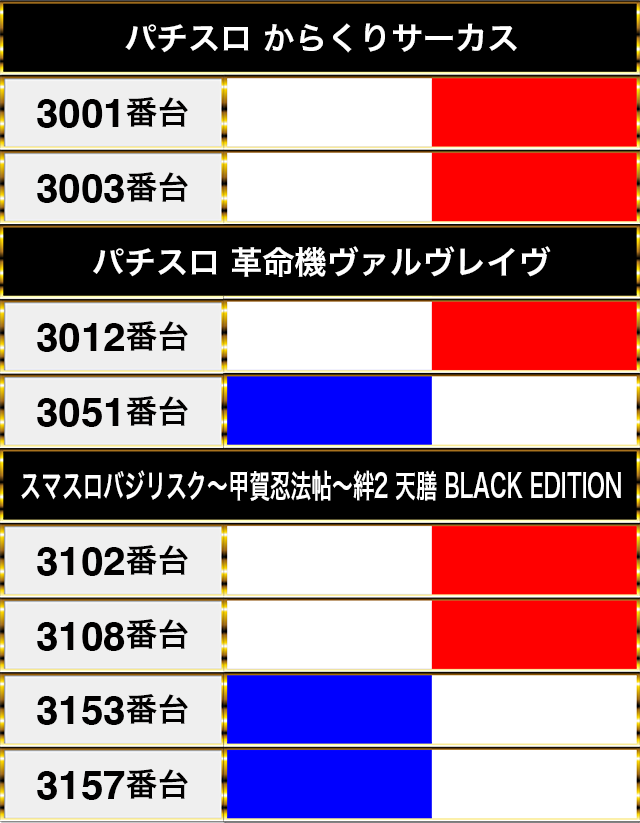 『パチスロ からくりサーカス』の3001番台と3003番台がプラスptを記録!!