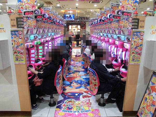 17時頃のパチンココーナーでは、「CRスーパー海物語IN沖縄4」をはじめとする海物語シリーズが高稼働。うれしそうなプレイヤーも多く、機種の醍醐味をしっかりと堪能できていたように思えた。