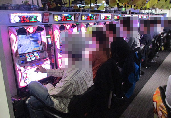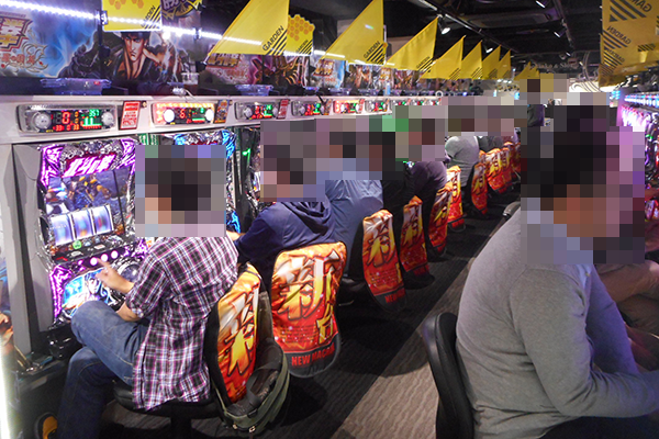 午後の20円パチスロをみてみると朝に引き続き、新台の「パチスロ北斗の拳 修羅の国篇」が大盛況。華麗なパフォーマンスを披露する姿もみられ、満足度の高さがうかがえた。