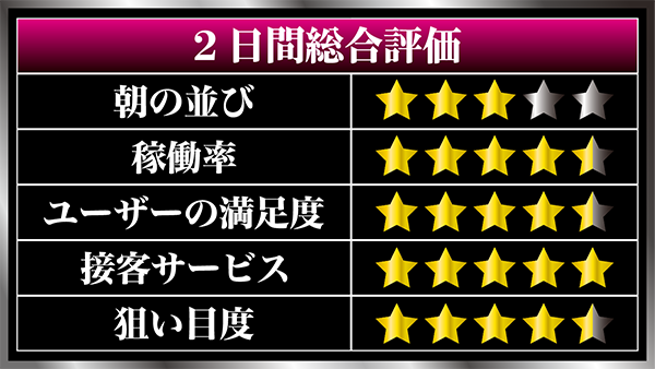 パチスロの低貸し玉コーナーも高稼働で、5円パチスロの「パチスロ ルパン三世~消されたルパン~」や2.5円パチスロの「アナザーゴッドハーデス」などに華やかな光景が広がっていたことを覚えている。
