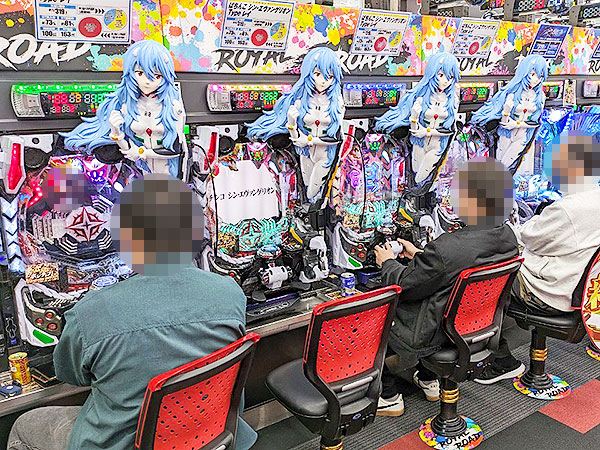 15時ごろの4円パチンコでは「ぱちんこ シン・エヴァンゲリオン Type レイ」が好評で、魅力的なシーンをシマの至る所で目にしている。