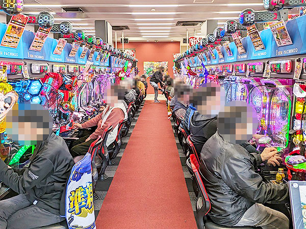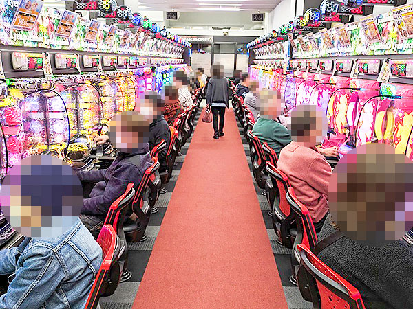 1円パチンコは機種を問わず人気が集まっており、ほぼ満席となるほどの盛況ぶりだった。