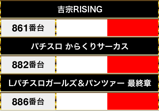 最終的には『吉宗RISING』の861番台や『パチスロ からくりサーカス』の882番台がプラスpt。