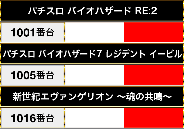 プラスptの台は、『パチスロ バイオハザード RE:2』や『パチスロ バイオハザード7 レジデント イービル』、『新世紀エヴァンゲリオン 〜魂の共鳴〜』にもあった。