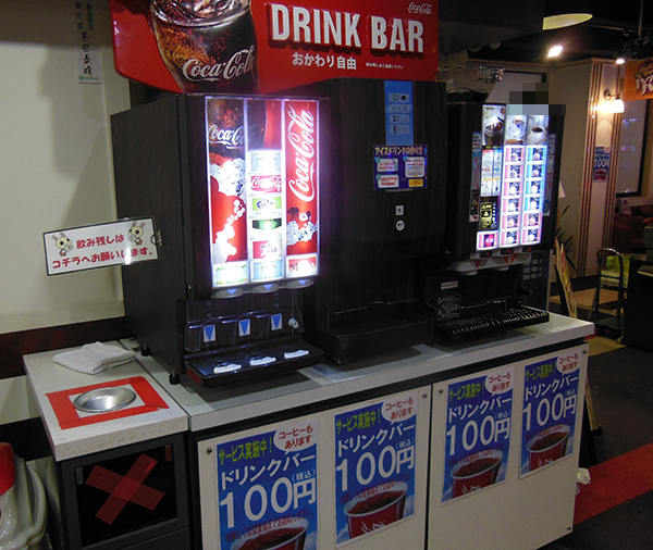 100円で飲み放題となるドリンクバーやスマートフォンの充実機など、設備・サービスも充実。貸し出し用の傘が常備されていることも好感を抱いたポイントのひとつだ。
