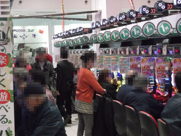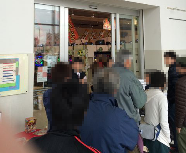 朝イチの並びは30名弱。開店1時間前の8時過ぎにはプレイヤーの姿が見られ期待の高さが伝わってきた。3度目の取材となるが、今回もホールスタッフの明るい笑顔に迎えられて、気持ち良く入場が始まった。