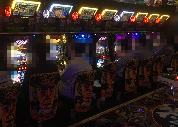 14時頃のパチスロでは、「バジリスク~甲賀忍法帖~絆」と「パチスロ北斗の拳 修羅の国篇」に機種の性能を最大限まで引き出しているといったプレイヤーがみられた。表情は明るく、有意義な時間を過ごせていたように思う。