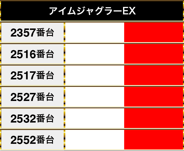 閉店時には2357番台や2516番台など、いくつもの台がプラスptを記録した。