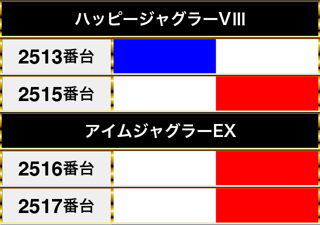 プラスptの台が並ぶ場所は、『ハッピージャグラーVⅢ』と『アイムジャグラーEX』にもあった。