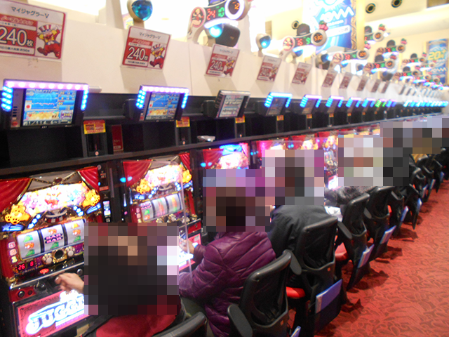 「マイジャグラーⅤ」も稼働率が高く、シマ内はにぎやか!