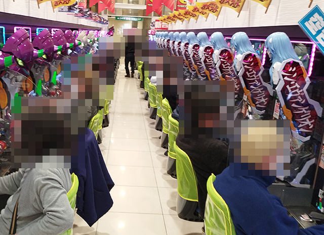 14時をまわった頃には7名が座っており、複数名が2箱以上の持ち玉で遊技をおこなっていた。