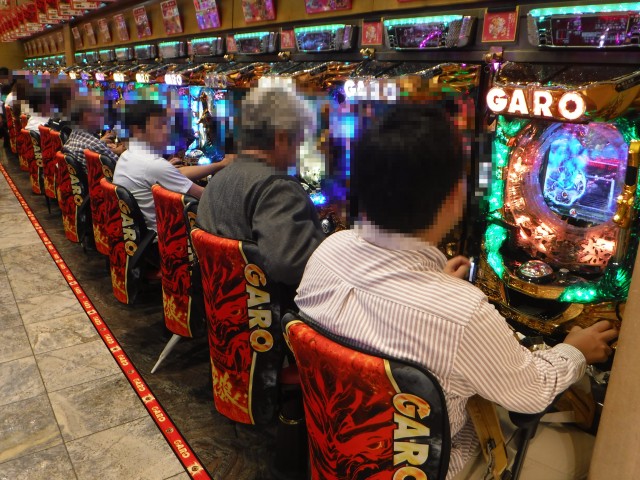4円パチンココーナーは「CR牙狼 魔戒ノ花」が人気で、多くのプレイヤーがコーナーを盛り上げていた。MAXタイプの性能を発揮するべく真剣な表情で台と向き合っていた。
