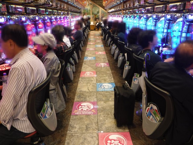 ほかに、ミドルタイプ「ぱちんこCR真・北斗無双」でも多くのプレイヤーが遊技を楽しむ姿があった。パーソナルシステムを導入しており、通路をふさぐこともないのでプレイヤーもスムーズに移動が行える。