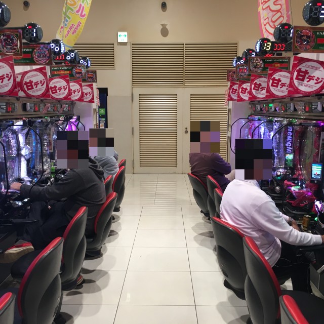 甘デジコーナーも健闘しており、多くのプレイヤーが真剣な眼差しで遊技に興じていた。
